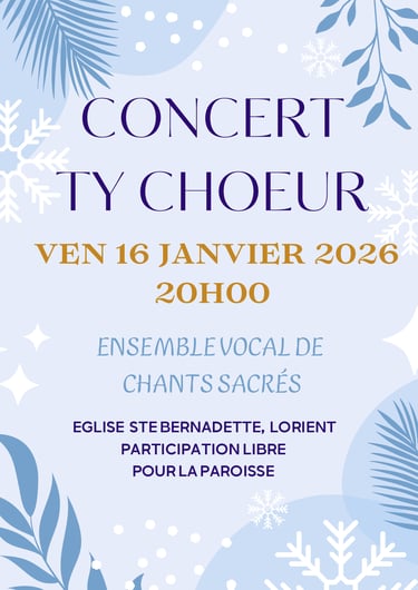 Concert spirituel TY CHOEUR, vendredi 16 à 20H, participation libre.